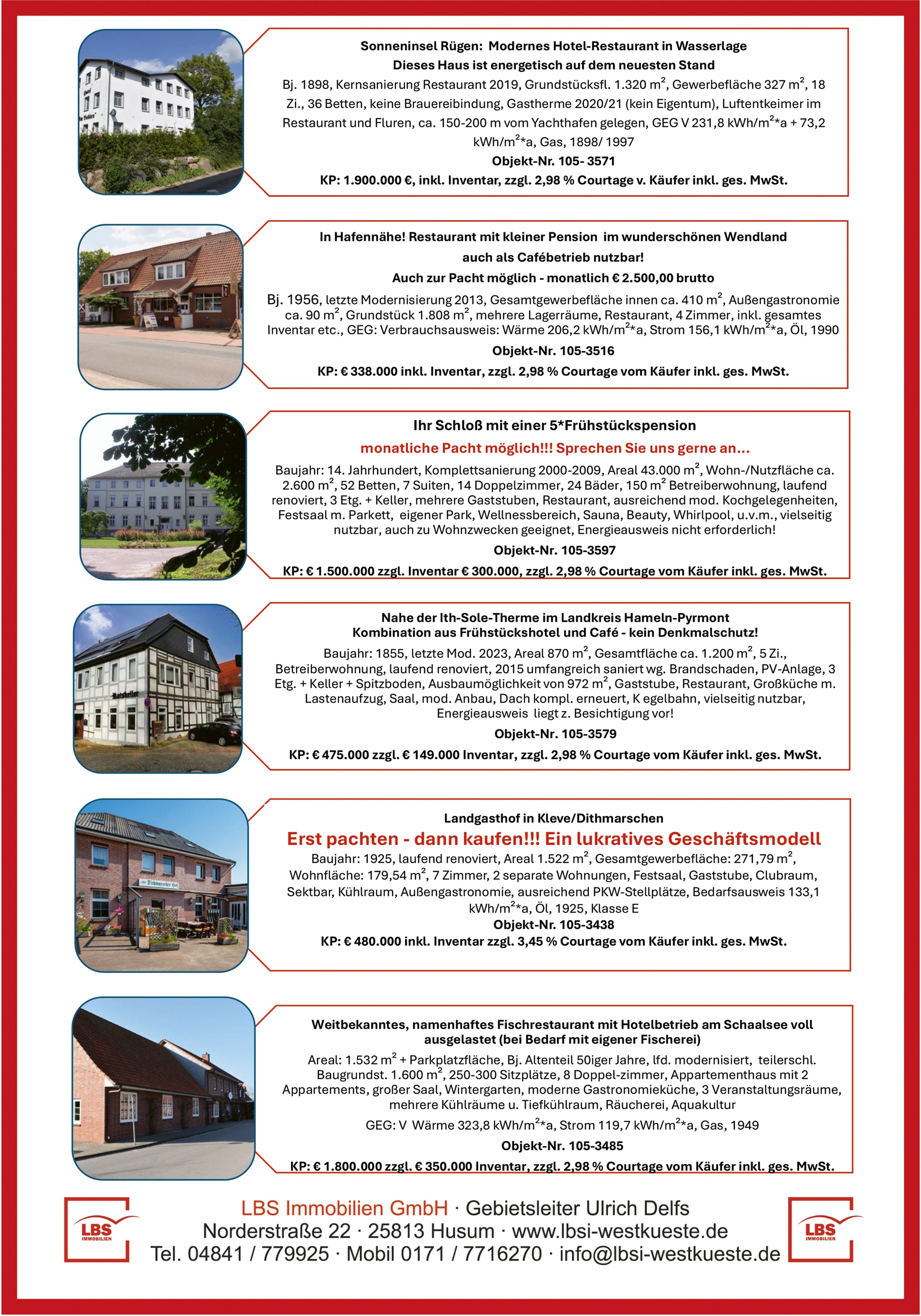 Hier finden Sie die Angebote wie Verkäufe, Vermietungen, Verpachtungen, Vermittlungen und Gelegenheitenaus unseren Fachzeitschriften für die Gastronomie und Hotellerie